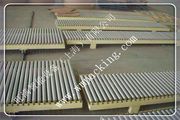 輥道的曲線段采用圓錐形輥子或雙排圓柱形輥子,可使物品轉彎。短輥道可以縮短輥子的間距,自重較輕。輥道一般稍下傾,當物品較重、線路較長時,為了推動物品時省力,斜度可取1~1.5%。如要使物品自滑,斜度可增大到2~3%。影響自滑斜度大小的因素很多,大多用實驗確定合適的角度。當線路長度小于10米、物品輕于 200千克時,可以布置成水平線路。自滑式輥道不易控制物品下滑速度,所以長度一般不大。